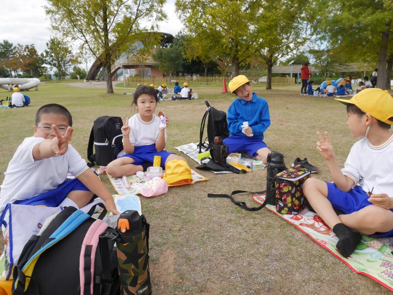 今日は1年生から4年生が遠足です。1、2年生は、エンゼルランドに、3、4年生は、トリムパークに行きました。