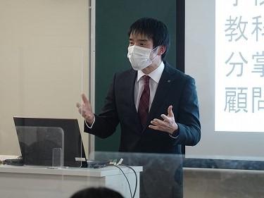 その後の講義では、授業づくりで大切にしていることをお話ししていただきました。そこでは、「教科書を」ではなく「教科書で」教えること、見通しを持たせること、集中力の続かない生徒への対処、自分が生徒の一番のモデルとなること、手段と目的をはき違えないようにすることなど、経験に基づいた明快な内容で、聞きながら深く頷く受講生の姿が印象的でした。そして、「まずやってみる」ことが重要であり、失敗も含めて様々な経験をしてほしいとエールを送ってくださいました。