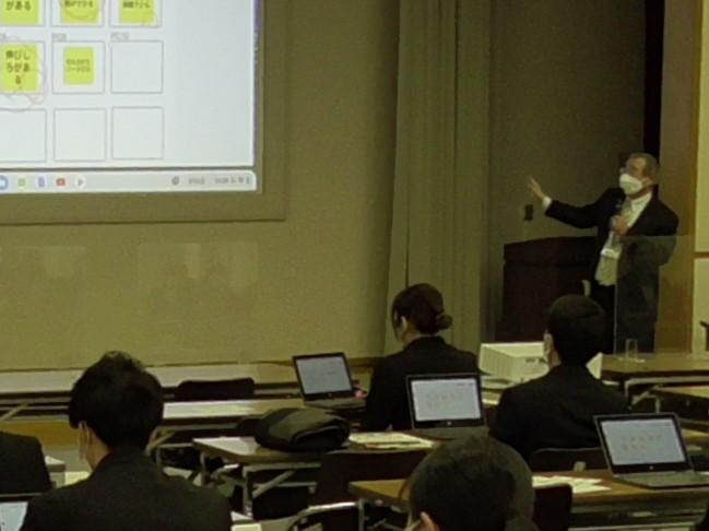 講座Ⅲ「教師としての心構え」では、なぜ教師をめざすのか、どんな教師になりたいのかなど、教職を志す根幹の部分について思いを確かめると共に、学習指導や生徒指導、学級経営などについて自分の思いや考えを語りました。今後、教師としての心構えがさらに磨かれるといいです。