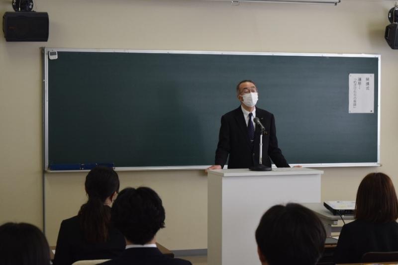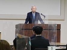 また、来賓としてご臨席いただいた石川県教育委員会の北野教育長からは、「これまで学生標準コースで学んだ塾生は1千人を超え、その多くが教員として学校現場で活躍している。皆さんも先輩方に続き、師範塾での学びを生かして本県の教員をめざして欲しい。」と、期待を込めた激励をいただきました。