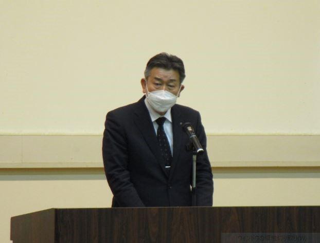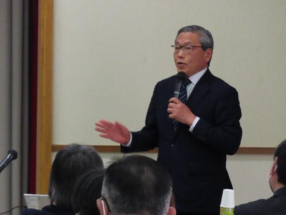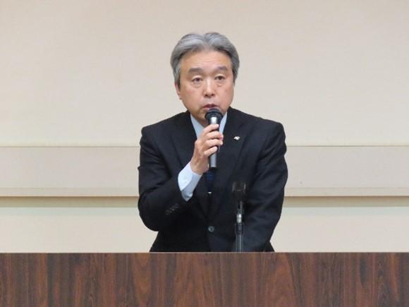 | 塾生を激励する北野教育長 | 挨拶する新村塾頭 | |
