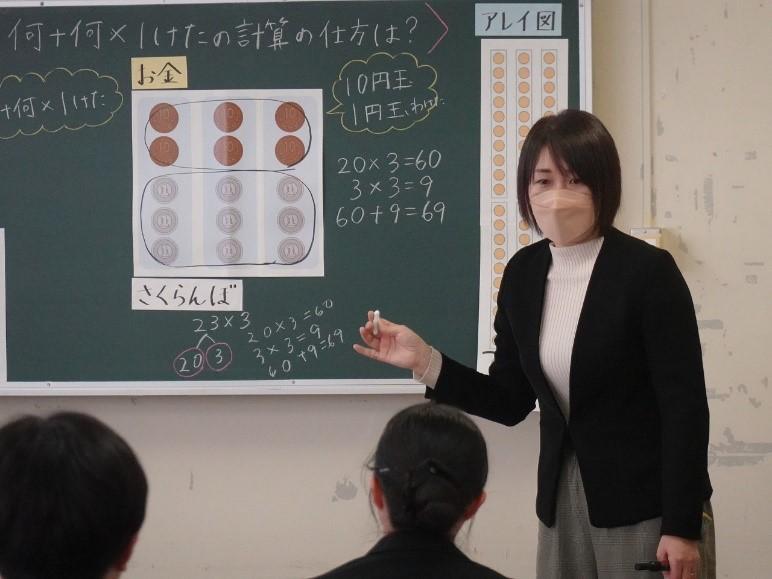 - 算数は個人差の出やすい教科だと思うが、同じものを学習する時でも言い方を変えたり、時間の流れが分かる板書をしたりすることで、子どもたちの考えを促すことができるとことを体験した。また、上下の学年のつながりを意識することで学ばせたいことも変わってくると分かった