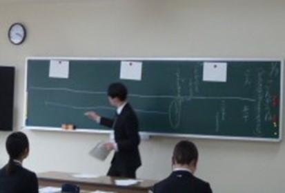 塾生は、授業の構成を考える時には、教師自身が自分の授業観を持ち、教材研究を行い、1時間毎のねらいを明確にして構成することの大切さを実感していました。教師の意図が細部に感じられた様々な工夫に、大いに刺激を受けたようです。