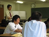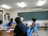 12日は、中部学院大学客員教授の久埜百合先生に、指導案作成のポイントを講義していただき、グループに分かれて、実際にALTとのティームティーチングを想定した指導案を作りました。
