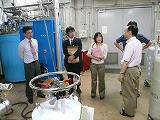 | また、超低温実験施設・装置の見学および液体窒素を利用した演示実験を体験・検討しました。 |