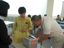 午後は、伝達講習の後、金沢医療センター小児科部長の太田和秀先生より「新型インフルエンザ・パンデミック、その特徴と対策について」と題して講義がありました。新型インフルエンザをめぐる様々な情報、学級閉鎖・学校閉鎖や予防接種の意義など、養護教諭の先生方は熱心に研修していました。