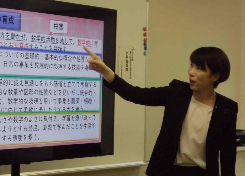 小学校・特別支援部会では、教員総合研修センター リーダー養成研修課 橋村由希子 担当課長より、「算数指導の今」と題してご講義をいただき、子ども自身が問題を発見し自分で解決していくこと、算数を創る楽しさを実感することの大切さを、参加者全員で再認識することができました。