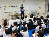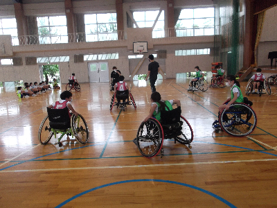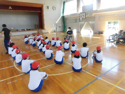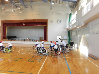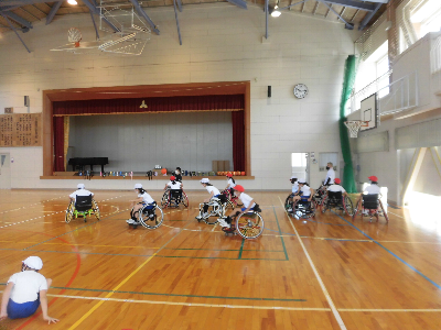 4年生が車椅子バスケ体験をしました。ゲストティーチャーをお招きして