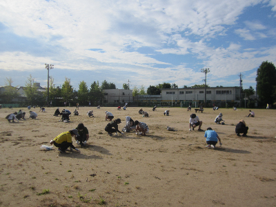 多くの皆さんのおかげで、運動会に向けて練習しやすい運動場になりました。本当にありがとうございました。PTA生活指導委員会の皆様、お世話をありがとうございました。
