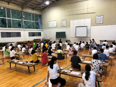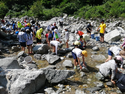 6月18日19日20日の3日間、6年生は、白山ろく少年自然の家で宿泊体験を行いました。1日目は、白抜山登山、きもだめし。2日目は岩魚つかみ、キャンプファイヤー。3日目は野外炊飯を行いました。登山で滑る足元に苦戦はしたものの、3日間天候に恵まれ「みんなで安全に活動し、チームワークがふかめられるような合宿にしよう!」のめあてに向かいすべての活動を行うことができました。