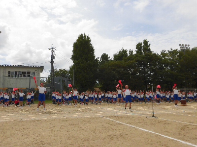 5日(月)から、低学年・中学年・高学年でそれぞれの「団体演技」の練習が始まりました。
