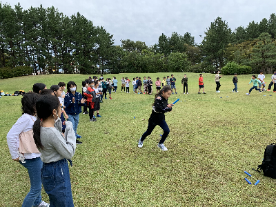 4.5.6年生が体力調査を行いました。ソフトボール投げや立ち幅跳び、シャトルランなど目標をもって取り組みました。