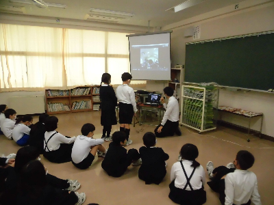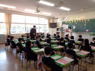 日頃からお世話になっている見守り隊やボランティアの皆様に学校にお越しいただいて感謝の会を行いました。運営委員長の谷口さんが児童を代表して感謝の言葉を述べました。