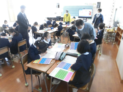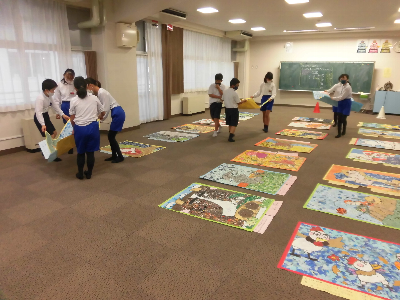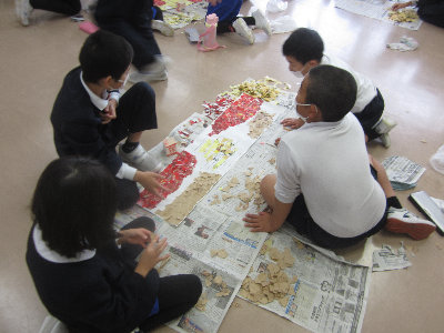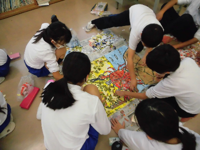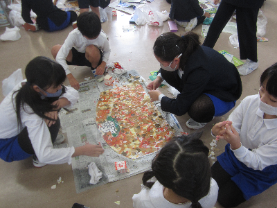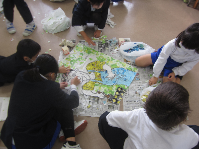 千代野小学校恒例の縦割り活動による「はり絵の会」が行われました。