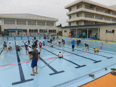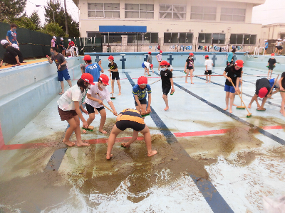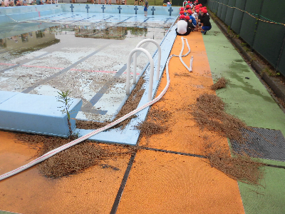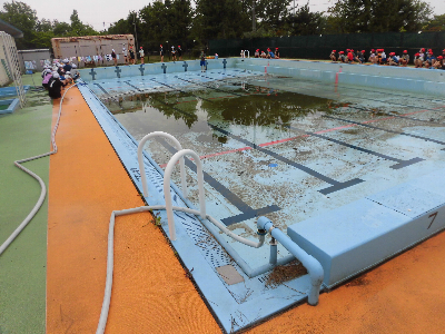 どろやごみ、葉っぱなどで汚れていたプールでしたが、