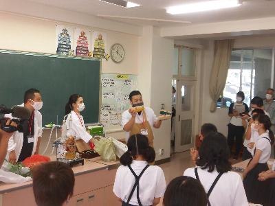 苦労や工夫について学びました。そして、一緒に給食を食べていただ