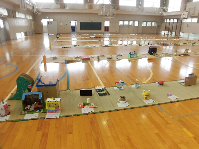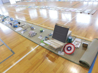 子ども達が夏休みに仕上げた自由研究や工作を、体育館で展示しています。