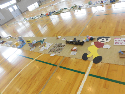子どもたちが夏休みに取り組んだ工作、研究、習字などを展示しています。