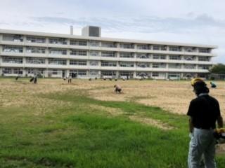 25日(日)は、早朝から多くの方の参加を頂き、愛校作業が行われました。猛暑をものともしない雑草は、例年にも増して生い茂り、学校職員や子ども達の力だけでは到底除草しきれないと思われる状態でした。