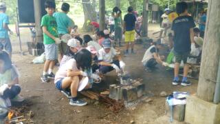 今日は、野外炊飯です♪自分たちで薪を拾い、飯ごうで炊きます。カレーは自然の家で作ってもらいました。山で食べるカレーは美味しいです♪