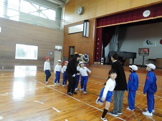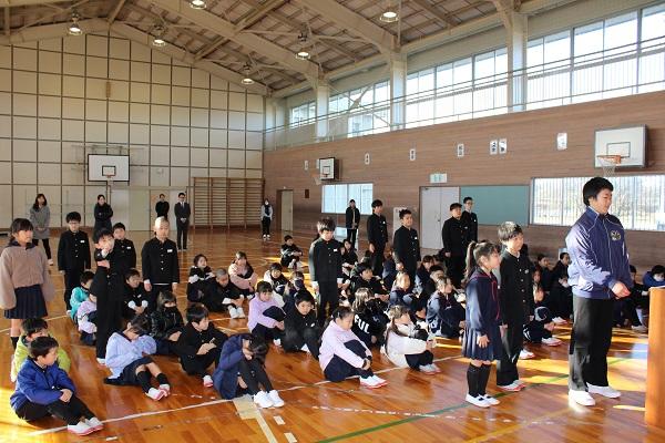 1年生が、来年度入学予定の園児をお迎えして「新1年生をむかえる会」を開催しました。1年生になってできるようになった一輪車やなわとび、鍵盤ハーモニカ演奏の発表やじゃんけん列車や鬼ごっこなどをして小学校の楽しさを伝えました。1年生は3人しかおらず、11人の園児のお世話をするのは大変な部分もありましたが、とてもがんばっていました。