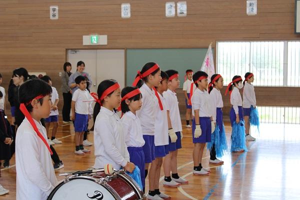 21日の加賀市連合運動会に出場する6年生のために、5年生が中心となって壮行会を開きました。1~5年生は大きな声で力強く応援歌を歌ったり、エールをおくったりしました。6年生もその応援に応えて、精いっぱいがんばることを宣言していました。