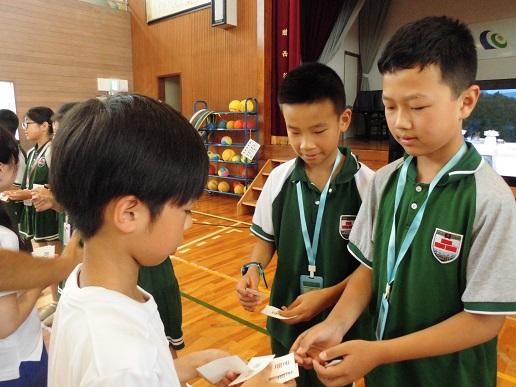 今日、中国の創新実験学校から児童・教員合わせて25名ほどが本校を訪問し、交流会を開きました。11日・12日は5・6年生が合宿で不在だったため、4年生が本校の代表として学校紹介や学校案内を行い、合同の防災教室に参加しました。また、3限目には1~3年生も参加してお互いの校歌を発表しあい、そのあとペーパータワーというゲームを一緒に楽しみました。短い時間でしたが、外国の言葉や人々と触れ合える貴重な経験ができました。