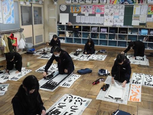 この日は始業式の後、書き初め大会が行われました。冬休み中の練習の成果を発揮し、みんなとてもいい字を書き上げていました。
