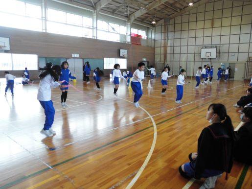 今日、勅使っこタイムになわとび大会を行いました。学年種目では、学年ごとに指定された中から跳び方と回数を選んで自分の目標を設定してチャレンジしました。また持久跳びでは1~3年生は1分間、4~6年生は2分間引っかからずに跳び続けることに挑戦しました。応援を力に変えて、みんな集中しながらリズミカルに跳んでいて、自分の目標をクリアした子もたくさんいたようです。