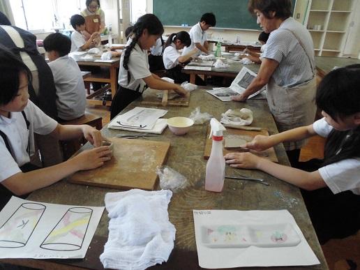 R6年6月21日 4年生 陶芸教室 投稿日時 : 2024/06/21 サイト管理者 2,3限目に町の陶芸教室の皆さんに来ていただき、陶芸のについて教えていただきました。あらかじめ考えてきたデザイン画をもとに、土をこねて、形作りをしました。焼いた後に割れないように注意しながら作業を進めていました。どんな完成になるのか楽しみです。 Tweet {{options.likeCount}} {{options.likeCount}} {{options.unlikeCount}} {{options.unlikeCount}} 0 コメント