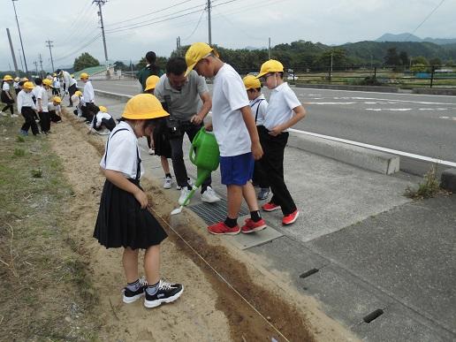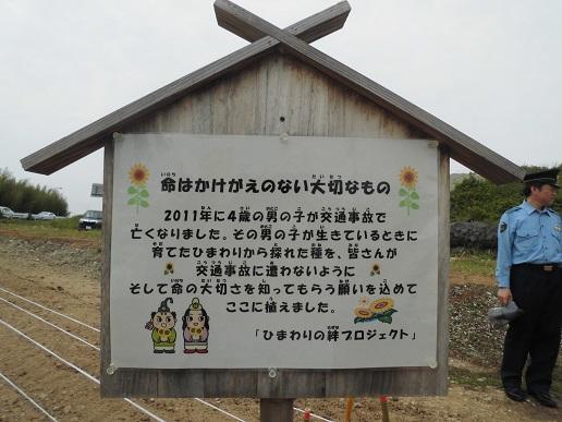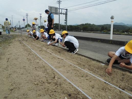 R6年5月24日 ひまわり絆プロジェクト 投稿日時 : 2024/05/24 サイト管理者 平成23年に京都府内において交通事故で亡くなった男の子(当時4歳)のご遺族から、生前男の子が大切に育てていたひまわりの種を引き継ぎ、その種を育てて、ひまわりを開花させることで、交通事故防止や命を大切にしようとする意識を高めること目的に実施している活動です。昨年度に引き続き、今年度公民館長さんをはじめとする地域の皆様や警察の方々のご協力のもと、1人10粒ほどの種を植えました。 Tweet {{options.likeCount}} {{options.likeCount}} {{options.unlikeCount}} {{options.unlikeCount}} 0 コメント