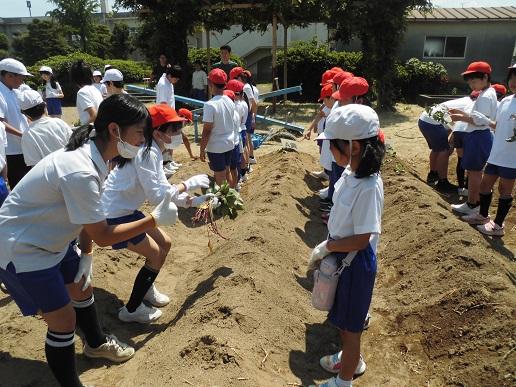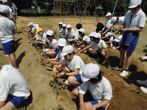 R6年6月12日 さつまいもの苗植え 投稿日時 : 2024/06/12 サイト管理者 今日の勅使っ子タイムに全校でさつまいもの苗を植えました。事前に6年生が畝を作ってくれた畑にファミリーごとに1本1本大きなおイモができますようにと願いながら、植えました。これから、水やりを全校の当番割にしたがってやりながら、秋の収穫を楽しみに育てていきます。 Tweet {{options.likeCount}} {{options.likeCount}} {{options.unlikeCount}} {{options.unlikeCount}} 0 コメント