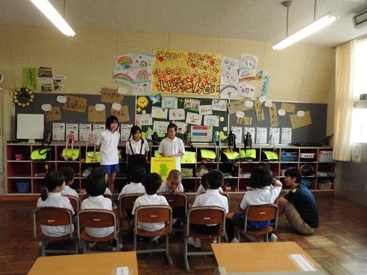 R6年6月20日 朝の読み聞かせ 投稿日時 : 2024/06/20 サイト管理者 今日の読み聞かせは、4年から6年の情報委員会の児童が2人~3人に分かれて行いました。絵を見せながら読むというのは、なかなか難しいですが一生懸命読んでいました。聞く子ども達も、静かに耳を傾けていました。 Tweet {{options.likeCount}} {{options.likeCount}} {{options.unlikeCount}} {{options.unlikeCount}} 0 コメント