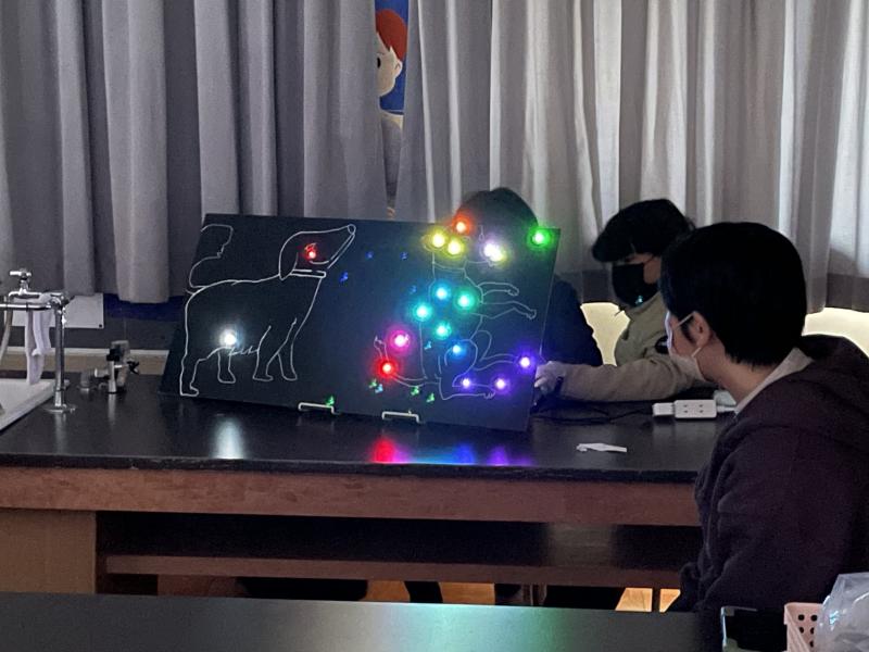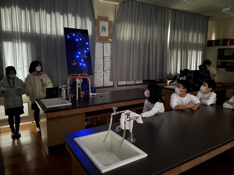4年生がマイクロビットやLEDライトを使ってプログラミングをしました。星が瞬き、きれいに輝くようにプログラミングをしながら、星座の説明をしました。たくさんの来場者がありましたが、4年生は立派に分かりやすく説明することができました。見学した2年生や3年生もその説明を聞いて、星座についてとても興味を持つことができました。