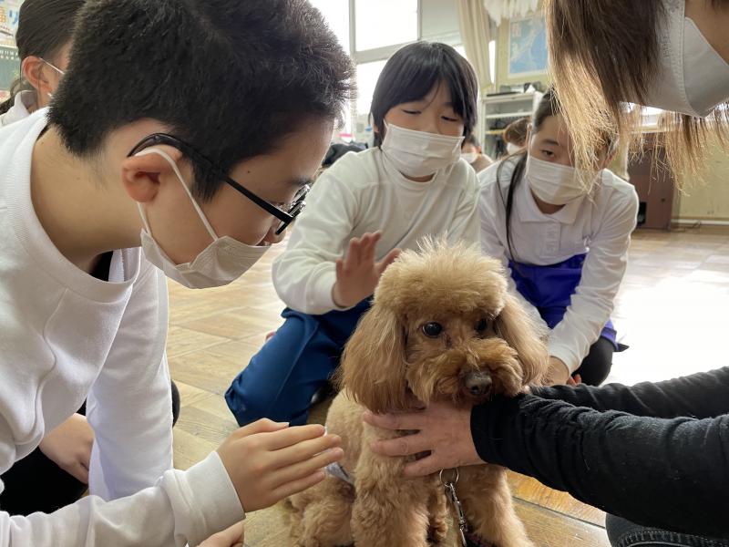 5年生で1月20日に「子どもと犬のふれあい講座」が行われました。たくさんの犬とふれあい、命の大切さを学びました。