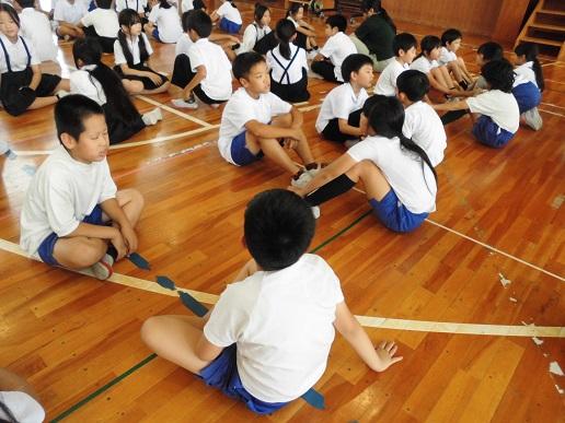 児童のかかわりの力(ソーシャルスキルと自尊感情)の育成を目指し、山代中学校及びその校下の小学校では、ペアや小グループで短時間の対話をする活動を取り入れています。今日の全校集会で、この対話活動「ちょくしっ子トーク」のしかたや約束について話を聞いた後、実際に「犬とねこ、どちらをかってみたい」という二者択一のお題でペアでやってみました。来週から毎週水曜日の朝読書の時間に全クラスで取り組んでいきます。
