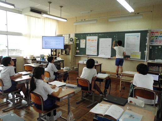 加賀市が取り組んでいる「Be the PLAYER」子ども達が自立した学び手として授業を参観するため、福井県坂井市の教育委員会から視察に来られました。今日は、3年、4年、5年の算数科の授業を公開しました。5年生は学習計画に沿って、自分一人あるいは友達と一緒に課題解決に取り組んでいました。2年生、4年生は、初めに今日の学習のポイントとなる点をみんなで考えて、確認してから、各自のペースで、自分が選んだ問題に取り組んでいました。
