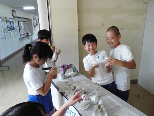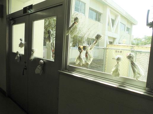 明日はいよいよ運動会です。暑い中ですが、今日は最後の練習日ということで、みんな真剣に一輪車やリズムの練習にとり組んでいました。でも、心配なのはお天気。天気予報では、くもり時々雨となっており、「大丈夫かな」と子ども達も気にしています。ぜひ、晴れてほしいとの願いを込めて、てるてる坊主屋さんを開店し、全校が自由にてるてる坊主の顔を書いて飾りました。絶対、晴れますように!