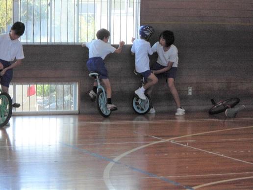 今日は、長休みに一輪車の練習に全校で取り組むパワーアップ一輪車の日。運動会で、高学年の素晴らしい演技に刺激を受けた低・中学年が張り切って練習に取り組んでいました。6年生は、低学年の体や一輪車を支えてあげたり、上手に乗るコツを教えてあげたりしていました。勅使小のよき伝統が受け継がれていきます。