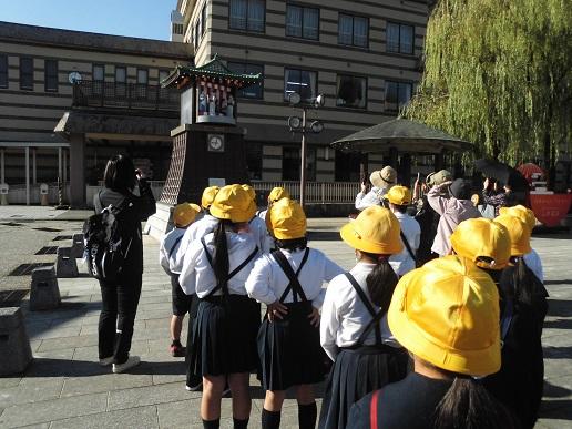 3年生は総合の学習で、「外国の人に加賀市のよさを伝えよう」というねらいで、加賀市のいろいろな場所を調べています。先週の山代温泉探検に続き、今日は山中温泉の探検をしました。総湯や山中座、あやとりはし等を見学したり、おいしいと有名なお店のコロッケを味わったりと、盛りだくさんの内容で、子ども達にはたくさんの発見があったようでした。
