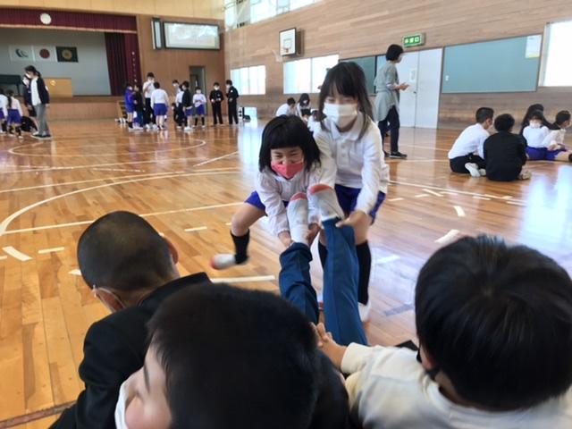 4月26日 1年生を迎える会が行われました。自分PR作戦で自分のステッカーをプレゼントしたり、大根抜きをしたり、全校で楽しい時間を過ごしました。