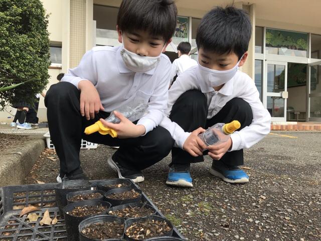 5月20日 さつまいもの苗を植えました。高学年が低学年に教える姿が何とも微笑ましいです。収穫できる日が待ち遠しい(^O^)
