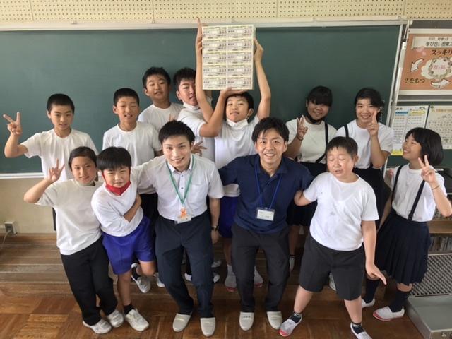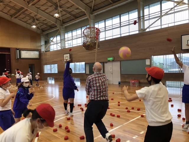 6月8日 勅使小学校に聖火トーチがやってきた。以前にボッチャでお世話になった先生がみんなのために持ってきてくださいました。