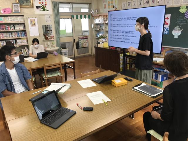 8月25日 GIGAスクール構想の「協働的な学びの実現」に向けて、先生方が研修を行いました。どんな場面で、どのように使用するかを考えました。