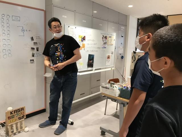 8月27日 夏休みの工作でプログラミングロボットを作成しようと、ものづくりラボの先生に教えてもらいました。