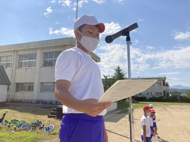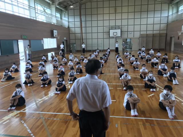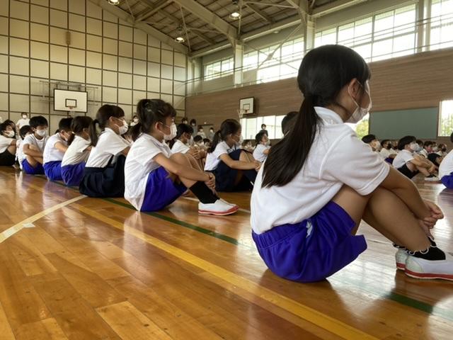 8月31日 始業式が行われました。78人全員が登校し、サイコーのスタートを切れたことを全校で喜びました。
