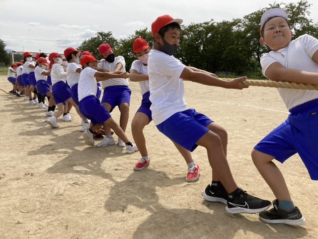 9月17日 朝から綱引きをして楽しみました。運動会に向けて盛り上がってます。