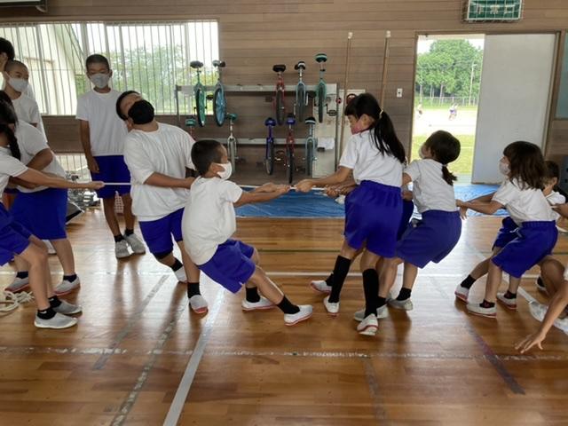 9月13日 玉入れや綱引きで、対戦してみました。今日の練習を生かして、どんな作戦を立てるかがポイントですね。