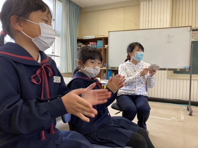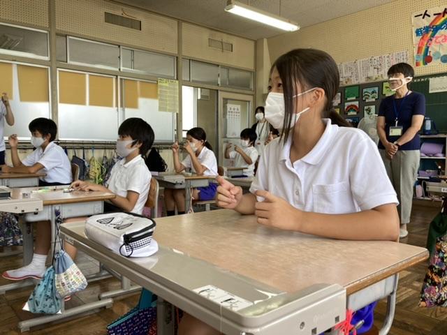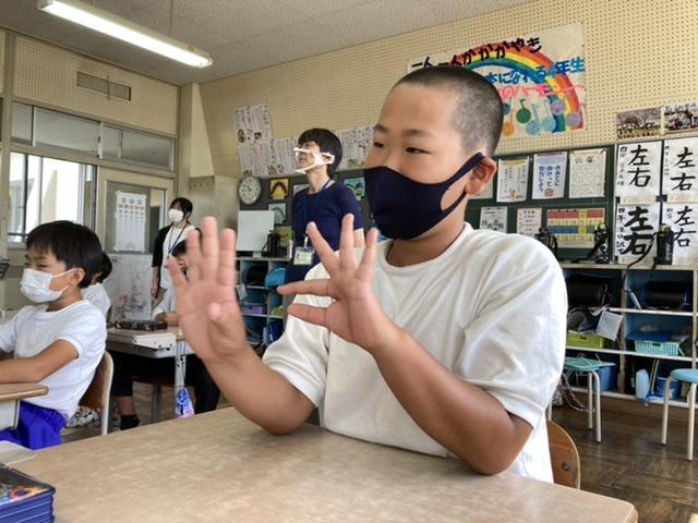 みんなでやさしいまちづくり教室が4年生で行われました。実際に手話を教えていただきました。