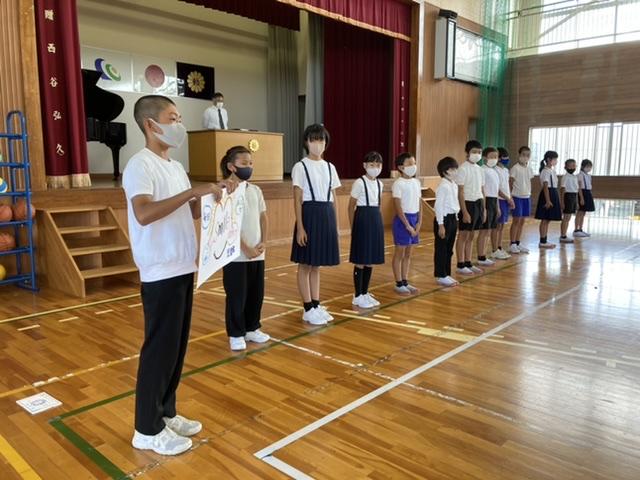 10月6日 任命式が行われました。児童会、学級会の代表が全校児童の前で、抱負を述べました。自分の言葉、堂々と、みんなに伝えようと話す姿に、より良い学校を作ろうとする思いが伝わってきました。